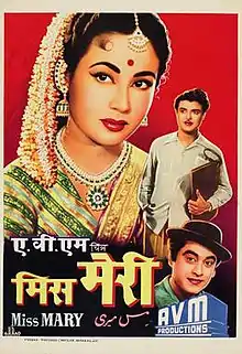 Miss Mary is a 1957 Indian comedy film directed by L.V. Prasad. The movie is an AVM production, written by Hargobind Duggal, and directed by L. V. Prasad.[1] The original Missamma was directed in Telugu in 1955 and was remade as Missiamma in Tamil with Savitri playing the title role in both films. It was remade in Hindi as Miss Mary in 1957 with Meena Kumari in the titular role, keeping Jamuna as the constant factor in all these films. L. V. Prasad directed all three versions. The music was by Hemant Kumar with the lyrics and dialogue written by Rajendra Krishan. The songs were sung by Kishore Kumar, Lata Mangeshkar, Asha Bhosle, Geeta Dutt and Mohammed Rafi. The film's script was adapted by Chakrapani from two Indian Bengali-language novels: Rabindranath Maitra's Manmoyee Girls School[2] and Sharadindu Bandyopadhyay's Detective.