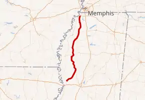 Mississippi Highway 3 (MS 3) is a north–south Mississippi state highway, located entirely within the Mississippi Delta region, running from Redwood to Lake Cormorant, both at an intersection with U.S. Route 61 (US 61). For much of its duration, MS 3 is overlapped (concurrent) with U.S. Route 49W (US 49W). It travels approximately 192 miles (309 km), serving DeSoto, Tunica, Tate, Panola, Quitman, Tallahatchie, Sunflower, Humphreys, Yazoo, and Warren counties.