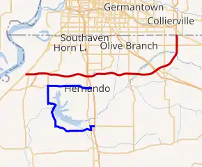 Mississippi Highway 304 (MS 304) is east-west state highway in the northwestern part of the U.S. state of Mississippi, running for 40.4 miles (65.0 km) as a four-lane freeway from U.S. Route 61 (US 61) in Tunica Resorts to the Tennessee state line near Collierville. It is mostly concurrent with Interstate 69 (I-69) and Interstate 269 (I-269).