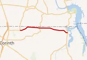 In 1974, a paved road was built from MS 2 to the Alcorn–Tishomingo county line.[6][7] It was later extended to MS 25 in 1981, and was designated as MS 350 in the same year.[8][9] No significant changes have been made to the route since.[2][9]