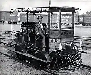 ![]() T.V. Young, the Superintendent of the M.R. & B.T. in a track inspection vehicle