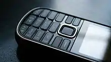 Besides the number keypad and buttons for accepting and declining calls (typically from left to right and coloured green and red respectively), button mobile phones commonly feature two option keys, one to the left and one to the right, and a four-directional D-pad which may feature a center button which acts in resemblance to an "Enter" and "OK" button.