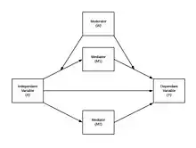 In order to test for moderated mediation, some recommend examining a series of models, sometimes called a piecemeal approach, and looking at the overall pattern of results.[1] This approach is similar to the Baron and Kenny method for testing mediation by analyzing a series of three regressions.[6] These researchers claim that a single overall test would be insufficient to analyze the complex processes at play in moderated mediation, and would not allow one to differentiate between moderated mediation and mediated moderation.