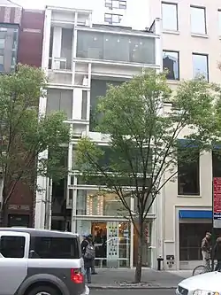 The four-story building was constructed for Modulightor, a company that Rudolph co-founded to sell light fixtures. It has seen commercial and residential uses, and later housed a gallery on its top floors. The gallery exhibited "Paul Rudolph: The Personal Laboratory" in 2018.[1][2] The building currently holds Modulightor's fabrication center in the basement and on the first floor; the remaining spaces house the Paul Rudolph Institute for Modern Architecture and several duplexes. One of these duplexes is occupied by Ernst Wagner, the building's owner.[3]