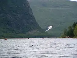The Moisie River is popular with experienced canoeists concerning its whitewater. It flows through a deep valley of glacial origin. The width of the valley varies considerably, at the spout of the river the valley is very narrow, and wider in areas that are not obstructed by rapids. The views of mountains and cliffs cause it to be used for canoe camping.[2][5] The Quebec North Shore & Labrador Railway follows the lower section of the Moisie River and provides access to the Quebec-Labrador plateau from which canoeists can reach its headwaters. Because of its remote proximity, there are very few access points to the river and if an accident were to occur with a canoeist the most common form of salvation is by floatplane. Yet in still, because of the narrow valley some canoeist much travel kilometres until they can reach a spot for a plane to land. The Railway crosses the river at the last whitewater rapid on the river, which is also the largest, and most well known. These rapids have been named train tracks because of their close proximity to the Railway above. There was a forest fire in the Summer of 2014 which destroyed a lot of the ecosystem surrounding the river and made it unsafe for campers and canoeists to explore and venture. The Moisie River is very remote and has very few inhabitants. You can see few cabins along the river.