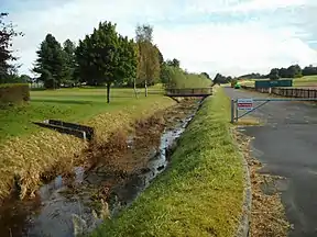 The final 250 m (270 yd) stretch from Greendyke to the Clyde was rerouted at some time in the past. The burn now enters the Clyde 125 m (137 yd) upstream of the 1795 confluence point, near the Tidal Weir[7][8]