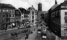 The area around the square was densely populated until World War II, when much of Berlin's city centre was destroyed by strategic bombing. In addition, the Nazi authorities had cleared many buildings in preparation of their Welthauptstadt Germania plans, with the intention of creating an administrative Gauforum around the Altes Stadthaus, which was originally separated from the square by several residential buildings along Jüdenstraße.[3] In 1959, under the East German rule, the broad Grunerstraße was relocated, running through the square to Alexanderplatz.[4]