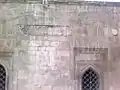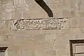 On the upper part of the mosque there is an inscription in Arabic. The two-lined writing gives detailed information about construction date of the mosque, its client, and as well as the architect, who took an active role in constructing military, religious and memorial buildings and structures. In his works, influence of Shirvanshahs period is observed.[3]
