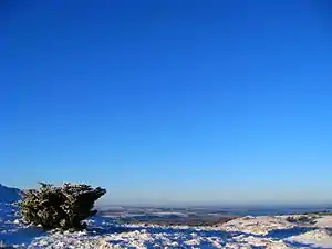 Jernhatten (English: The Iron Hat) is a view point on the coast of the Kattegat sea, in the eastern parts of the park. The cliff above the sea has a drop of 49 metres (161 ft). The formation is very hard and not erodible by sea waves. From the car parking area, the site is approached along a track passing through the beechwood of Troldeskoven (English: The Troll Forest). The hill offers panoramic views of the surrounding area and across the Kattegat sea with the small island of Hjelm in the southeast. The path to Jernhatten leads onwards to the hills of Hyllested Bjerge, the forest of Bagskoven and down to the beach. The seafloor along the coast here, comprise a cold water stony reef with an extensive kelp forest known as the Blak, offering good snorkeling opportunities in the summer months.[5] Harbour porpoises may be visible as well.[11][12]
