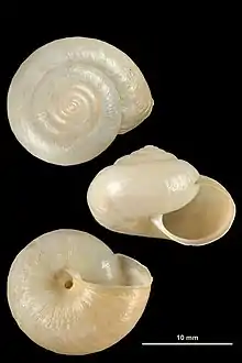 | Shell of Monacha cantiana (specimen at MNHN, Paris) | |