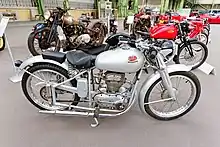 The collaboration between the Drusiani family and the Boselli family continued at the end of the war period, with the reconstruction of the building, thanks to the enormous economic resources of Boselli, who took over full control of the company.[2][3] FB effectively relaunched in 1948 as FB Mondial. Mondial found early racing success, winning their first of what would become five World Championships in only their second year of production. During a time when MV Agusta and Ducati produced economy lightweight two-stroke motorcycles, mopeds and scooters, Mondial was more of a "boutique" manufacturer, specializing in high-performance, small-displacement motorcycles. Much of the production of each motorcycle was done by hand, which kept output low, with production numbers typically ranging between 1,000 and 2,000 units per year. Mondial were able to continue this success for a number of years, sticking with this methodology. In 1957, Soichiro Honda approached Mondial owner Count Boselli for purchase of a Mondial racebike, with which the firm had just won the 125 cc and 250 cc world titles. Count Boselli gave Mr. Honda a racing Mondial; Honda used this bike as a standard to which he aspired, in order to compete on a world-scale. An original Mondial 125 cc racebike is, still now, the first bike on display when entering Honda's Motegi Collection Hall.
