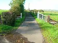 Until 1945 the Douglas Firebrick Company Ltd had its works located where the Wilson Car Auction company now trades (2010).[28] A double track narrow gauge railway, working through a gravity driven 'cable and pulleys' system ran from the works to the fireclay mine on the lands of High Monkcastle.
