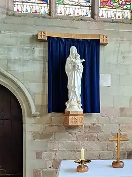 The church spire blew down in 1701.[21] The distinctive parapets were added in the late eighteenth century and the church owes much of its current interior appearance to its most recent major restoration, in 1869.[18] The church's dedication to Saint Edith of Polesworth was almost certainly revived in the eighteenth century (see the article on church dedications), but the presumed medieval or Anglo-Saxon origins of the dedication to St Edith - while generally accepted - are unclear.[22]
