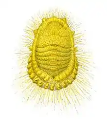 Giant scales have an elongated oval body; many species grow to a length of one centimetre long and the African species Aspidoproctus maximus achieves 35 mm long.[6] The adult females of the family have six dark coloured legs and conspicuous antennae. Most genera have a waxy coating but some do not. Various species have some form of ovisac or marsupium.