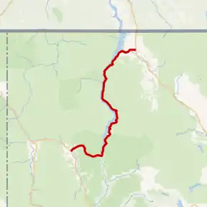 Montana State Highway 37 (MT 37) is a 67.048-mile-long (107.903 km)[2] state highway in the US state of Montana. It begins in downtown Libby, Montana at US 2 and takes a meandering course northeastwards upstream along the Kootenai River and the eastern shore of Lake Koocanusa before terminating at U.S. Route 93 at the northern end of Eureka, Montana. Previously, MT 37 also followed US 93 from Eureka into Whitefish and turned down what is now MT 40 towards US 2 and Glacier National Park until at least 1942.[3]