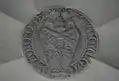 The funeral monument of Cardinal Antoniotto Pallavicini on the left wall was made by the Bregno workshop. It was originally set up in the apse of the Old St. Peter's Basilica but a Dutch traveller, Aernout van Buchel glimpsed it in 1587 among various other discarded tombs and sculptures in the nave due to the ongoing demolition of the ancient church.[3] According to the inscription on the sarcophagus "always having death in mind, Antoniotto Cardinal of S. Prassede, erected [this tomb] for himself while still alive, in the year 1501". The monument was restored and transferred to the choir of the Basilica of Santa Maria del Popolo by his great-nephews in 1596 to which date the longer inscription on the base belongs.[4] At the same time the Pallavicini family erected another tomb in the right aisle for a long deceased member of their house, Cardinal Giovanni Battista Pallavicino. The tomb of Antoniotto has been moved into the baptistery at an unknown date (but later than 1629) after temporary stay in the Chigi Chapel nearby.