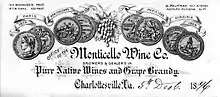 The Monticello Wine Company was a Charlottesville, Virginia cooperative founded in 1873 by local grape growers,[1] led by a German, Oscar Reierson.[2] Its four-story winery had a capacity of 200,000 gallons, and was located at the end of Wine Street, near Hedge Street.[3] It was the largest winery in the South.[4] It shut down with the onset of Prohibition in Virginia, which took effect on November 1, 1916.[1][5]