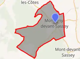 Montigny-devant-Sassey (French pronunciation: [mɔ̃tiɲi dəvɑ̃ sasɛ], literally Montigny before Sassey) is a commune in the Meuse department in Grand Est in north-eastern France.