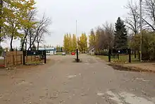 The next renovations occurred in the '80s when the New Holland shop opened, owned by Murray and Laurencia Hewalo. The Marshall Wells Store was built, as well as Dusyk Enterprises, John's Air Conditioning and Refrigeration, Yvette's Hair Care, and Montmartre Mini-Mart.[42] New home businesses also opened such as Jury's Shoe and Leather Repair and Montmartre Electric. The swimming pool change-house burned down but was rebuilt, and the long-established Sacred Heart Convent closed.[43] In addition to the new businesses and some buildings being burned, there were many devastating tornadoes in the municipality, especially in 1989. The first tornado was on the Carry The Kettle Reserve and fortunately there were no fatalities or houses ruined, but trees were uprooted.[44][45]