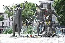The Monumento a la Fundación de México-Tenochtitlán is installed near the government offices in the historic center of Mexico City, Mexico.[2] The monument, designed by Carlos Marquina,[3] was dedicated in 1970. Part of the sculpture depicts an eagle atop a cactus, eating a snake, similar to the imagery on the flag of Mexico.[4]