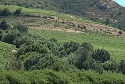 Moon Mountain District Sonoma County is an American Viticultural Area (AVA) within Sonoma Valley and North Coast viticultural areas, just north of the city of Sonoma. This mountainous region on the very eastern edge of Sonoma County has a historic reputation for producing rich, intensely-flavored wines from Cabernet Sauvignon and Syrah varietals since the 1880s.[2] The District was established on November 1, 2013 by the Alcohol and Tobacco Tax and Trade Bureau (TTB). Its designation covers 17,663 acres (28 sq mi) of land stretching north-south along the western slopes of the Mayacamas mountains between Sugarloaf Ridge State Park and Los Carneros viticultural area with the Napa Valley’s Mount Veeder viticultural area outlining the eastern slopes. Its name is derived from Moon Mountain Road, which traverses through the area and itself a reference to Sonoma, which means 'valley of the moon' in the local Native American dialect.[6] A clear view to San Francisco 50 miles (80 km) south is not uncommon from Moon Mountain District vineyards.[5]