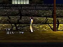 Moonlight Syndrome is an entry from the Twilight Syndrome series, and the first entry in the series to feature major input from Goichi Suda, who acted as writer and director.[4] Suda had previously served as director of the first two Twilight Syndrome games when the original director had to step down due to scheduling conflicts, but he was unable to have much input.[2][5] He wanted to create his own take on the series with Moonlight Syndrome, similar to how he had created an unconventional and notoriously dark ending to Super Fire Pro Wrestling Special in reaction to his restricted work on Super Fire Pro Wrestling III.[4][6] The game began development following the release of the second Twilight Syndrome game.[4] While the series focused on supernatural horror, Suda wanted to create something more frightening and apart the ghost story elements which genuinely scared him to the point he did not want to be involved with the series. This resulted in the story shifting away from paranormal elements and using psychological horror.[5][6] The aim was to increase the frightening aspects of the game by making the violent incidents within the story random and caused by people rather than supernatural entities.[4]