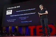 He has spoken publicly on topics of neuroscience, business, decision making and hacking (TED, PopTech, Google, TEDx, TED-Ed)[11] and his views on the risks of hacking into humans' brains are often appearing in the media.[4][12][13][14][15][16]