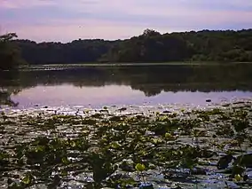 Morrison Rockwood State Park is an Illinois state park on 1,164 acres (471 ha) located north of Morrison in Whiteside County, Illinois, United States. The park was established in 1971 and opened for day use that same year. It is named after the nearby Rock Creek and the heavily wooded park area "Rockwood". Lake Carlton is located within the park. Lake Carlton is a watershed impoundment constructed in 1969 by building a 38-foot (12 m) high, 1,800-foot (550 m) long earthen dam across a tributary stream to Rock Creek. The lake was named in memory of L. Carlton Anderson, a local citizen who promoted the park and was an important civic and conservation leader.