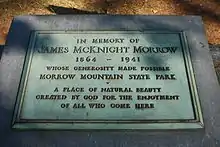 Development of the park began in the 1930s through the efforts of a local committee interested in establishing a state park in the area. By 1937, more than 3,000 acres (12 km2) of land had been acquired, much of it donated by the citizens of Stanly County. Morrow Mountain is named for one such citizen of Scotch-Irish descent, James McKnight Morrow, who donated more than 1000 acres to the State on June 29, 1920.[5] The park was opened to the public in the summer of 1939.