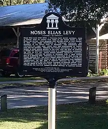Moses Elias Levy (1782 in Mogador, Morocco – September 7, 1854 in White Sulphur Springs, Virginia) (In Arabic :موسى إلياس ليفي) was a Moroccan-Jewish businessman and ardent social and religious reformer. Born into an elite Sephardic Jewish family in Morocco, Levy migrated to Gibraltar as a child and later established himself as a slave merchant in the Caribbean with extensive business dealings in England, Europe, and the Americas. After amassing a fortune, Levy ended his business career in favor of a life centered on philanthropic causes.[1] In 1821 he immigrated to the Florida Territory in the United States where he established a large agrarian refuge for Jews who were suffering under repression in Europe. Although the number of Jews fell far short of expectations, at least five Jewish families made their way to Levy's Pilgrimage Plantation—located in north central Florida—making this the first agrarian Jewish settlement in the United States (1822–1835).[1] The plantation was destroyed by fire during the onset of the Second Seminole War (1835–1842). Levy, a slaveholder, was also unusual in his advocacy of the gradual emancipation of slaves. He wrote "A Plan for the Abolition of Slavery" while in London in 1828, achieving celebrity during the height of the antislavery campaign.[1][2][3] Levy was instrumental in leading a series of inter-religious debates in elite venues where he challenged Christians to end antisemitism.[4] Since Jews had never before entered the public sphere in England, and certainly never openly questioned the status quo, these public meetings created a furor in London. Widespread international press coverage referred to these protests as the "Extraordinary Movement of the Jews."[4]