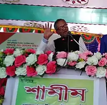 Uddin was elected to Parliament in 1986, 1996, 2008, and 2014 from Mymensingh-6 as a Bangladesh Awami League candidate.[3] On 31 December 2016, a murder case was filed against him over the death of two protesters, including a professor, in police action. The protestors were demanding the nationalization of the Fulbaria Degree College.[4] On 24 January 2017, a former member of Mukti Bahini filed a case against Udin accusing him of carrying out war crimes during the Bangladesh Liberation war.[5]