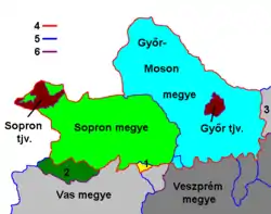 After World War II, Győr-Moson-Pozsony county merged with Sopron County to form Győr-Sopron county. This county was renamed to Győr-Moson-Sopron county in the early 1990s.