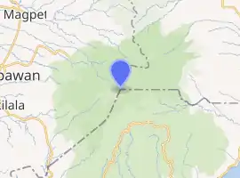 Mount Apo, also known locally as Apo Sandawa, is a large solfataric, dormant stratovolcano on the island of Mindanao, Philippines. With an elevation of 2,954 meters (9,692 ft) above sea level, it is the highest-mountain in the Philippine Archipelago, Mindanao and 24th-highest peak of an island on Earth. Located between Davao City and Davao del Sur in the Davao Region, and Cotabato in Soccsksargen, Mount Apo is the most-prominent mountain in the Philippines. The peak overlooks from Davao City 45 kilometers (28 mi) to the northeast, Digos 25 kilometers (16 mi) to the southeast, and Kidapawan 20 kilometers (12 mi) to the west. It is a protected area and a Natural Park of the Philippines.[8]