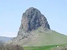Mount Goyazan (Azerbaijani: Göyəzən dağı) is a mountain in the northwestern Qazakh District of Azerbaijan. It is located in the vicinity of the villages Abbasbeyli and Alpout, and rises 857.9 metres above sea level. Ruins of a Goyazan fortress from the 14th century were found near the mountain.[1][2][3]