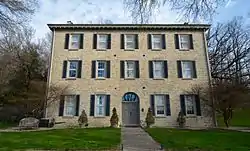 Mount Saint Bernard Seminary and Barn are historic buildings located south of Dubuque, Iowa, United States. Bishop Mathias Loras, the first Bishop of Dubuque, founded the a Catholic institution of higher education in his residence in 1839. St. Raphael's Seminary, primarily for the education of priests, was probably the first college established in what would become the State of Iowa.[2] The Brothers of Christian Instruction, a French teaching order recruited to the diocese of Loras, contributed their services to the seminary.[3] The school was expanded in 1850 when he began the construction of three new buildings on Table Mound that he named Mount St. Bernard College and Seminary. The Rev. Andrew Trevis, who was later influential in the development of Sacred Heart Cathedral in Davenport, was the rector at the time the building was constructed. The three-story limestone combination Federal and Greek Revival structure was designed by local architect Hugh V. Gildea. It was built for $10,000, which was a lot of money for the diocese at that time.[4] It is unknown when the frame, gable-roofed barn with a stone foundation was built.