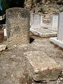 "Only in spring of 1848 did the British consul general in Constantinople and his colleague in Jerusalem,[ James Finn,] receive a firman to purchase a cemetery plot for the Protestant community."[4] Prepared by Nicolayson, later buried there, and with the support of Hugh Rose, British consul-general for Syria, and the Mutasarrıf of Jerusalem, Zarif Pasha, Bishop Gobat acquired the tract of land on Mount Zion in the same year, paying £ 350 (= 4,200 French francs) for the land, its enclosure and levelling.[5] Gobat financed the expenses with private funds earlier donated by Britons, Germans and Swiss, of which by December the British Government recovered £100 and later private British donators another £46.2.0, while Prussians did not specifically contribute to the project at that time. Mount Zion Cemetery replaced the old cemetery West of Jaffa Gate. So Gobat transferred the graves from there to the new cemetery on Mount Zion.[6] By the end of November 1848 it was completely enclosed by a wall.[5]