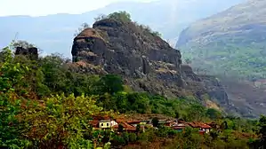 Mrugagad fort is a hill fort in Sudhagad taluka of Raigad district, Maharashtra, India. At a height of 1750 ft, the fort lies near Bheliv village, and is made of stone. The fort is very small in size and is in a form of spur radiating from the Western ghats. The fort is very close to the Lonavala, Khandala and Khopoli.