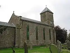 The church of St Mary and St Thomas of Canterbury by Thomas Foster dates from 1837. The chancel ceiling is painted with cherubs peeping over clouds.[2]