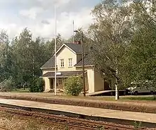 Muhos railway station is a railway station in the municipality of Muhos in the Northern Ostrobothnia region in Finland on the Oulu–Kontiomäki railway line. It is the second station east from Oulu railway station and the first passenger service station east from Oulu. The station was opened in 1927, and it was a staffed station until in 1998 when centralized traffic control was installed.