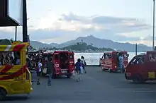Multicabs can be found throughout the Philippines. It can be found in urban areas such as Metro Manila,[3] Metro Cebu[2][4] and Metro Davao.[5][6][7] A multicab is lightweight, narrow and small and can navigate through narrow streets. With seating capacity of around 11 to 13,[8] the passenger space also tends to be cramped relative to a van. There are also multicabs that have a seating capacity less than 11.[9][10] Small multicabs typically have three-cylinder engines.[11] In Tacloban, there are plans to convert the multicab engines into rechargeable batteries for sustainable energy.[12]
