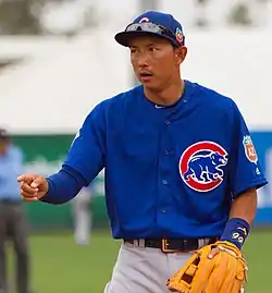 On January 21, 2016, Kawasaki signed a minor league contract with the Chicago Cubs that included an invitation to spring training.[45] He was released on March 29,[46] and re-signed to another minor league contract later that day.[47] On April 3, he was added to the 40-man roster and optioned to the Triple-A Iowa Cubs. He was recalled to the 25 man roster on April 8 when Kyle Schwarber was placed on the disabled list.[48] He was optioned back to Iowa on April 15, when Javier Báez was activated from the disabled list.[49] He was recalled on July 9,[50] and optioned back to Iowa on July 15.[51] On September 6, Kawasaki was recalled from Iowa.[52] In 14 games of 2016, Kawasaki batted .333 with an RBI and two stolen bases. The Cubs finished the season with a 103–58 record for an NL Central pennant, and would eventually win the 2016 World Series, ending their 108-year long world champion title drought.[53] Kawasaki was ineligible for post-season play in 2016, but traveled with the Cubs throughout the playoffs and joined the team on the field for the post-game celebrations.
