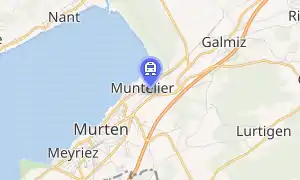 Muntelier-Löwenberg railway station (German: Bahnhof Muntelier-Löwenberg, French: Gare de Muntelier-Löwenberg) is a railway station in the municipality of Murten, in the Swiss canton of Fribourg. It is located at the northern junction of the standard gauge Fribourg–Ins and Palézieux–Lyss lines of Swiss Federal Railways.[1] It takes its name from the nearby municipality of Muntelier.