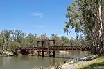 ![]() | Old Cobram-Barooga Bridge | 35°54′57″S 145°40′9″E | Cobram to Barooga | 1902 | Old liftspan timber truss bridge (now pedestrian only) | |