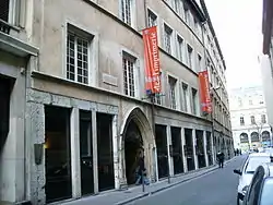 The Musee de l'Imprimerie was established in Lyon because Lyon had been a centre of printing and the book trade in Europe in the 15th and 16th centuries and the city held large historical collections of books and the graphic arts. The museum was designed by the master printer and historian Maurice Audin, with the historian of the book, Henri-Jean Martin, then chief curator of the Library of Lyon.[3] There are two banners before the entrance of the Hôtel de la Couronne, which hosted the meetings of the City of Lyon aldermen from 1604 to 1655[4] and which is currently the headquarters of the Musée de l'Imprimerie, located at 13 rue de la Poulaillerie. In 1957 the building was given to the City of Lyon by the banking corporation, LCL S.A., and on 8 June 1963 the mayor of Lyon, Louis Pradel, inaugurated the Musée de la Banque on the occasion of the centenary of LCL. Finally the current museum was opened in 1964.