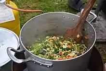 The didactic vegetable garden ProSpecieRara in front of the building is part of the museum in the territory. Following the intentions of the Swiss Foundation for preservation and promotion of genetic diversity in fauna and flora, the garden wants to attract the visitors’ attention on old and rare sorts of vegetables, which also include a local May beet variety (Rååfa, Raaftschi) of Bosco/Gurin. The many vegetables grown here are also the ingredients for the traditional soup Måtzufåmm. Some years ago, the original recipe was rediscovered and is now the main attraction of the traditional autumn festival organized in collaboration with the local Traditional costume group. During the festival, there are also free village and museum guided visits, a market with local products and games for children. Yet, it is mainly the delicious vegetable soup served with local bread and cheese which every year attracts not only the villagers, but more and more visitors from Ticino, Switzerland and even from abroad.[9]