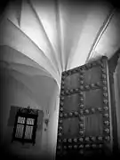 In general there is a symbiosis of the Moorish tradition with Flemish art. Cover of pair and knuckle in framed wood of casetones. The wood has decorative and utilitarian function. The ashlars are well carved and the portal was made by Covarrubias, made it entintelada, the entablature is flanked by paired pseudocolumns with niches and doseletes; the shafts having Grotesque decoration.[5]