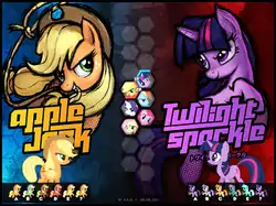 After each character's moveset was tested and refined based on testing feedback, the team then began to animate each character, first by creating Flash-based animations and then transforming these to sprites needed for Fighter Maker.[12] The team noted that the pony shape of the characters proved an additional challenge both visually and for the engine. With most fighting games, players can easily identify heads, arms, and legs, and know where to watch for attacks, but the same was not true for the ponies. They proceeded to add effects like sparks on the attacking character and opponent responses to help players recognize attacks.[12] In terms of the engine, the hitboxes for the ponies were more horizontal than vertical as would be the case with humanoid fighter characters, and they had to work around this in the engine to accurately model attacks.[12] Additionally the more horizontal shapes of the characters limited how much of the fighting stage space they could use; they overcame this within the game by using a 3/4ths view of the characters that shortened their on-screen lengths giving them more space to work with.[9]