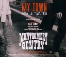 "My Town" is a song written by Julian Williams, Reed Nielsen and Jeffrey Steele and recorded by American country music duo Montgomery Gentry. It was released in June 2002 as the lead-off single and title track to their album of the same name. It peaked on the U.S. country chart at #5 and also peaked at #40 on the Billboard Hot 100, making it one of their highest peaking crossover singles.