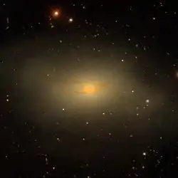 NGC 4753 is a lenticular galaxy located about 60 million light-years away[2] in the constellation of Virgo.[3] NGC 4753 was discovered by astronomer William Herschel on February 22, 1784.[4] It is notable for having distinct dust lanes that surround its nucleus.[5] The galaxy is a member of the Virgo II Groups, an extension of the Virgo Cluster.[6]