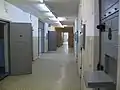 The main prison also included a hospital wing, built in the 1950s and expanded in 1972. The hospital treated prisoners from all three Berlin prisons and sometimes from regional Stasi prisons as well. The hospital had up to 28 beds (in cells), an X-ray ward, treatment and operating rooms, a laboratory, a morgue, and outdoor exercise cells (called “tiger cages” by prisoners). In 1989, shortly before its closure, the hospital was run by Dr. Herbert Vogel with 28 full-time Stasi staff.[6]